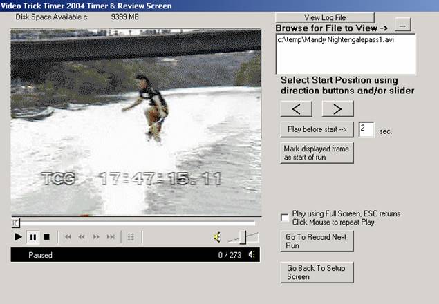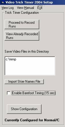 There is a Start Trick Timer button. The function of this button is to tell the program where the skier starts. This will make it easier to position to the exact start point in the timer screen. It also activates a start horn and then in 20 seconds an ending horn.