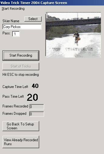 A 20 second timer countdown (15 for barefoot) is shown. If you press the Start Trick Timer button and there is less than 20 seconds left on the recording time, the file recording time will automatically be extended by 25 seconds from that point.